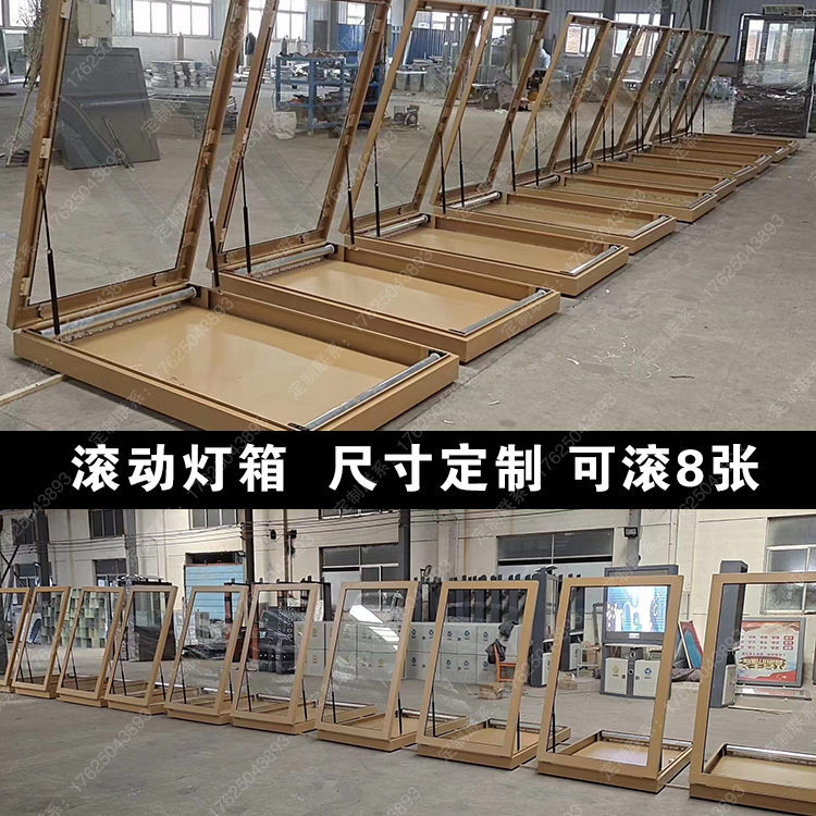 不銹鋼滾動燈箱自動卷軸機室內換畫面宣傳欄電機轉動太陽能廣告牌