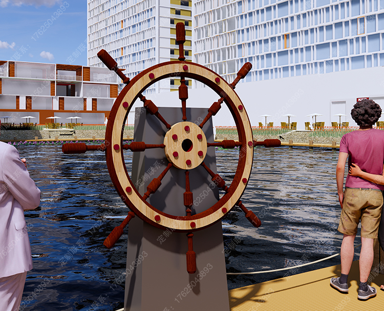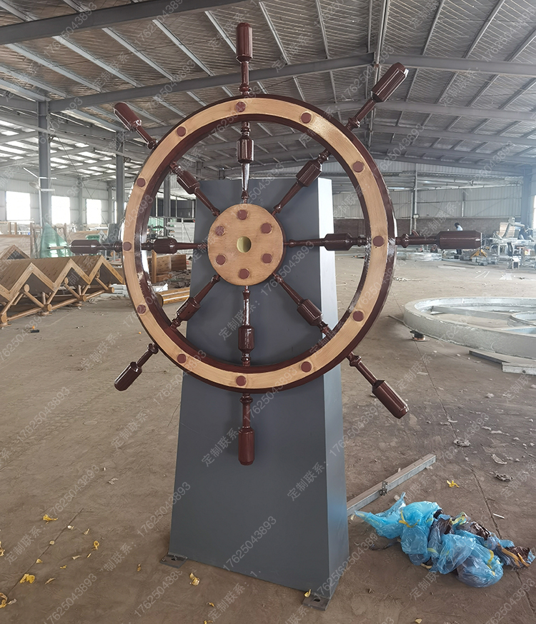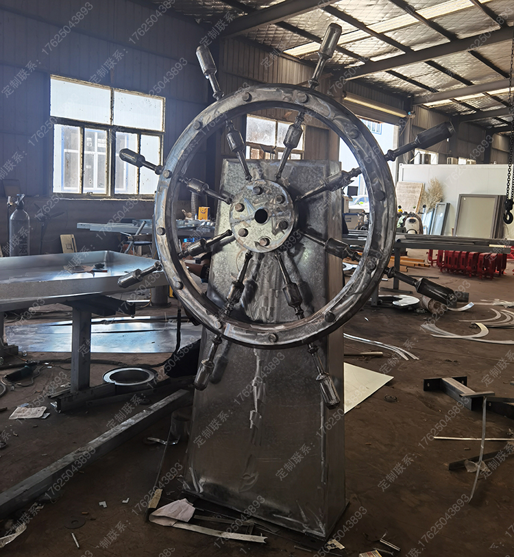 鈑金制作船舵雕塑,可翻轉(zhuǎn)轉(zhuǎn)動(dòng),互動(dòng)道具